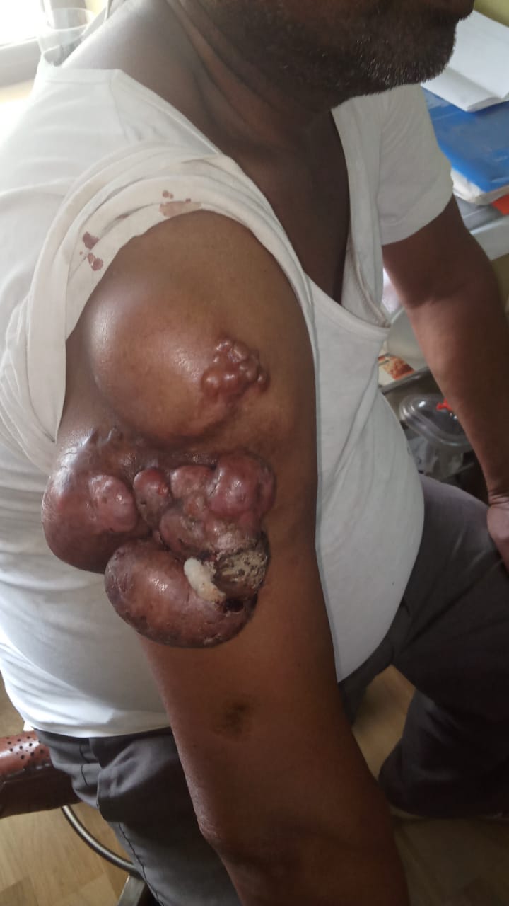 Patient presented with multiple uterine fibroids associated with infertility.